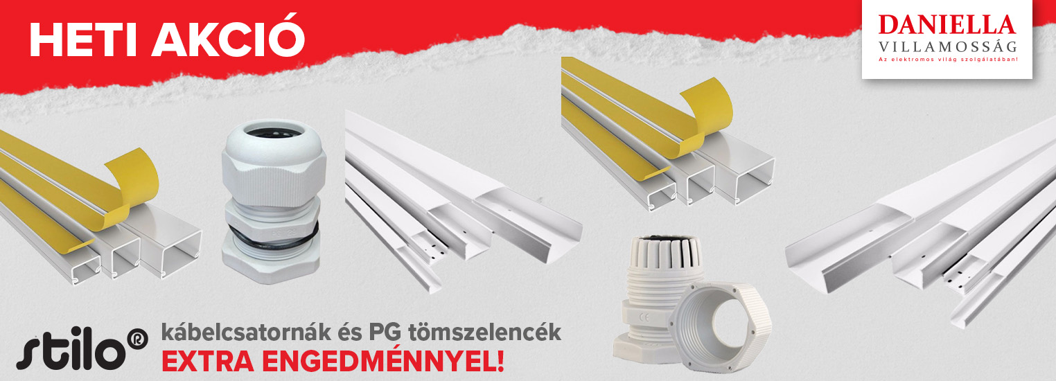 E heti akciónk keretében a Stilo kábelcsatornákat és PG tömszelencéket most extra kedvezménnyel kínáljuk.